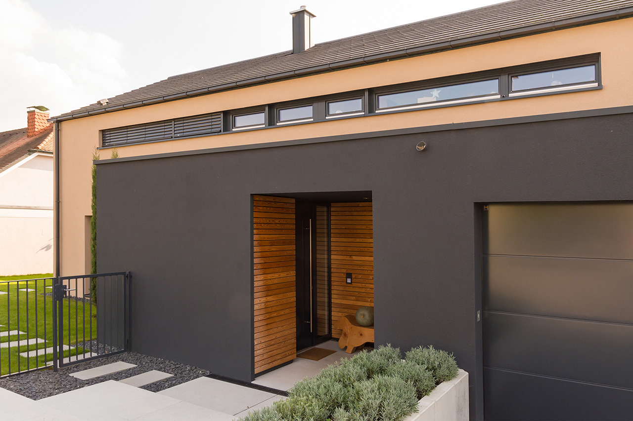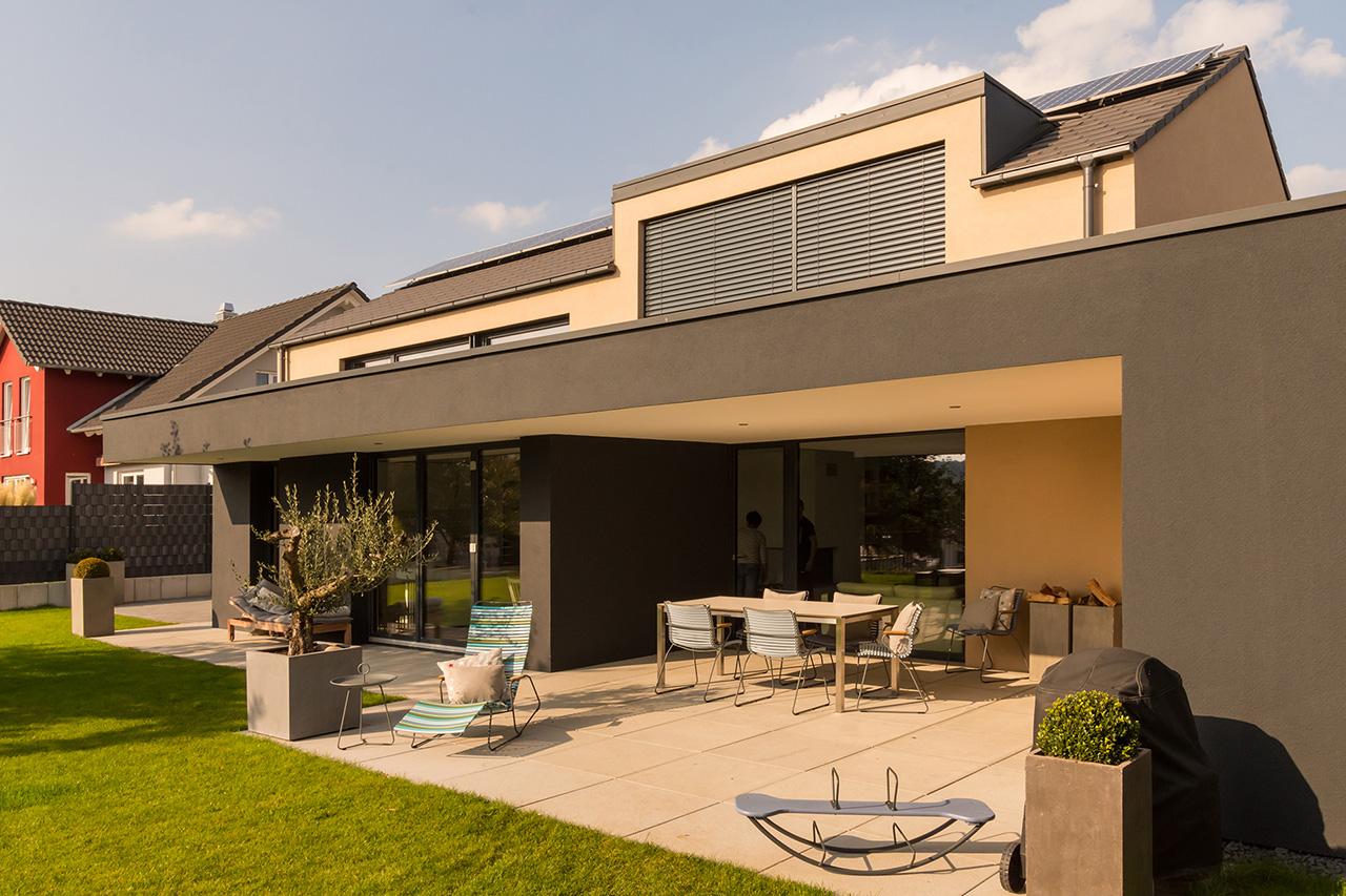 Kurzbeschreibung: hochleistungsfähiger Grundriss, maximale Ausnutzung der topografischen Gegebenheiten, ohne Keller