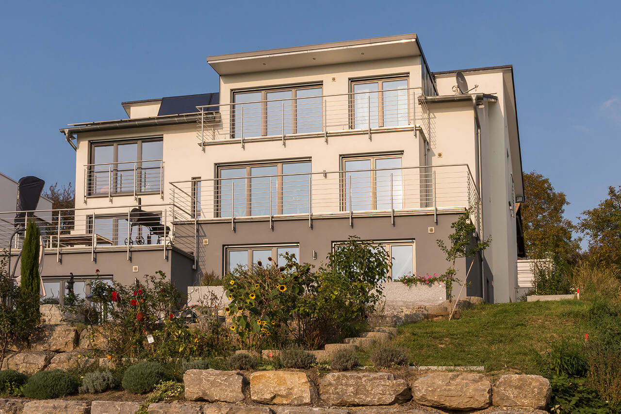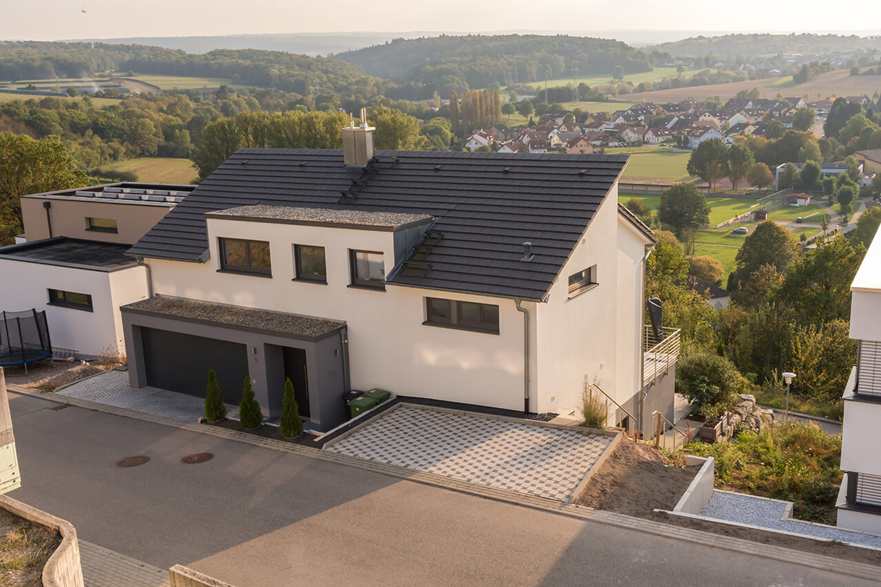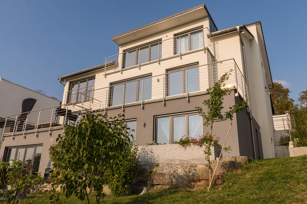 Kurzbeschreibung: hochleistungsfähiger Grundriss, maximale Ausnutzung des Grundstücks, Splitlevel, Bewältigung schwierigster topografischer Gegebenheiten