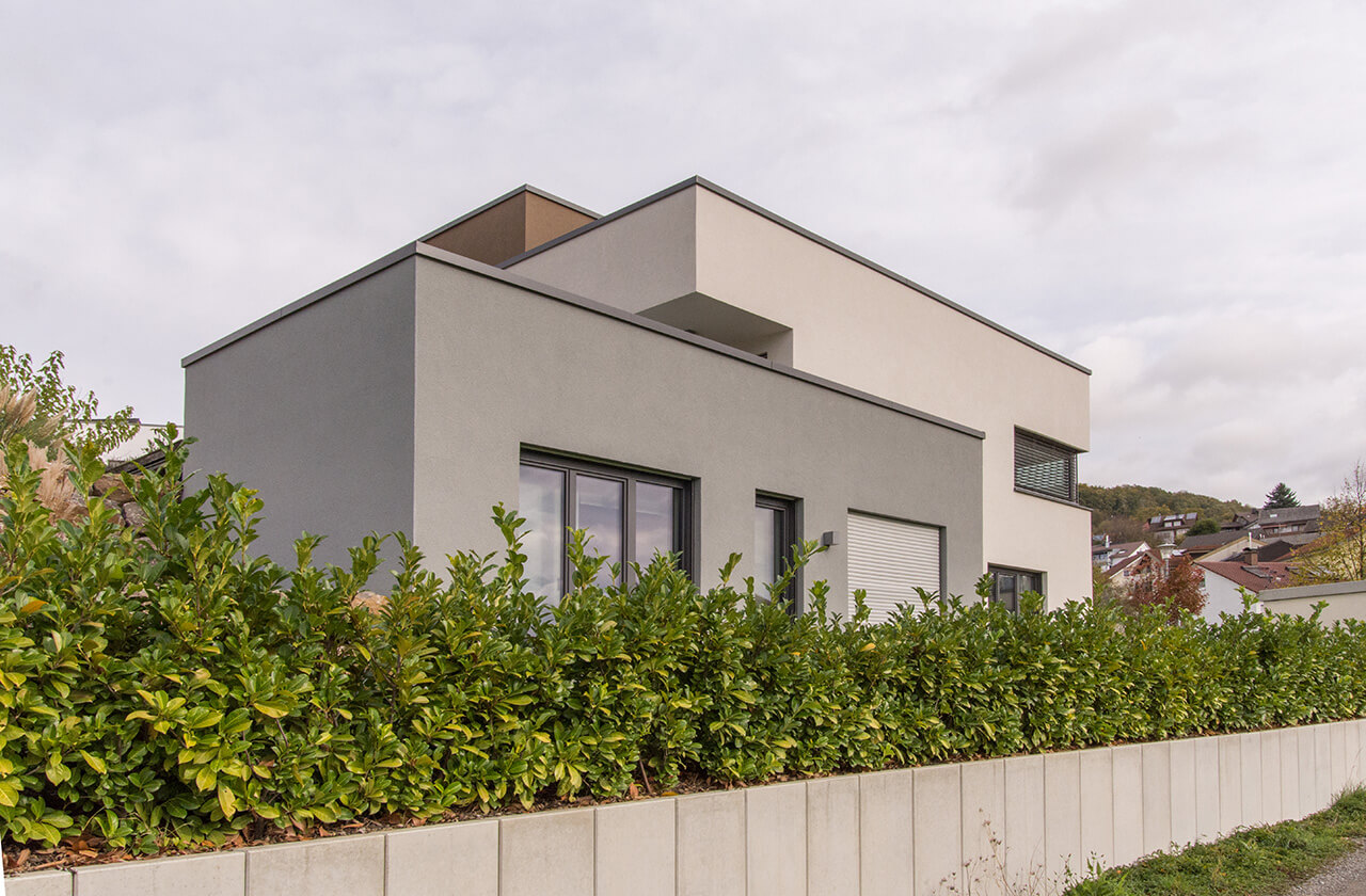 Kurzbeschreibung: hochleistungsfähiger Grundriss, maximale Ausnutzung des Grundstücks, Bewältigung der topografischen Gegebenheiten